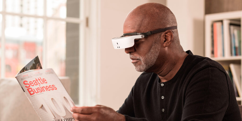 Træt af analoge briller? Denne elektroniske brille giver svagtseende mulighed for at se igen, hævder firmaet bag. Brillen fanger alt som bæreren ser via et kamera med høj opløsning, forbedrer signalet via en række egenudviklede algoritmer og smider det optimerede billede op på to OLED-skærme lige foran øjnene. Ved hjælp af en lille fjernbetjening og eSights såkaldt Bioptic Tilt-teknologi, kan bæreren løbende justere brillen til at optimere ”synet”. Der er endda en zoom-funktion, så den svagseende kan se ting bedre end alle os andre. Desværre koster brillen omkring 10.000 dollars – 60.000 kroner – og så minder man altså også lidt om Geordi La Forge fra Star Trek.