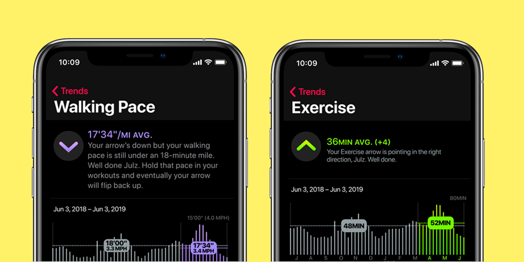 Sundhed og fitness har vist sig at være de salgsargumenter, der skubber flest Apple Watch over disken, så Apple har naturligvis proppet ekstra vitaminer i Aktivitet-appen i watchOS 6. Fremover vil man kunne få informationer om trends. Appen sammenligner de seneste 90 dages aktiviteter med hele årets aktiviteter og lader dig vide, om du er mere aktiv. Eller ej. Uret giver også gode råd til, hvordan du kommer tilbage på sporet, hvis du har taget en slapper.