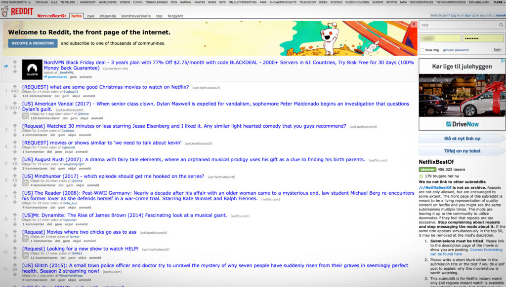 Hvis du mangler inspiration til serier, du skal se, så log ind på tjenesten Reddit, hvor tusindevis af nørder udveksler erfaringer om alt mellem himmel og jord. I den dedikerede subreddit r/NetflixBestOf finder du en guldmine af kompetente indlæg om film og tv-serier, der findes på Netflix. I det hele taget er Reddit et rent overflødighedshorn af interessant information om nærmest hvad som helst.ARTIKLEN FORTSÆTTER EFTER ANNONCEN