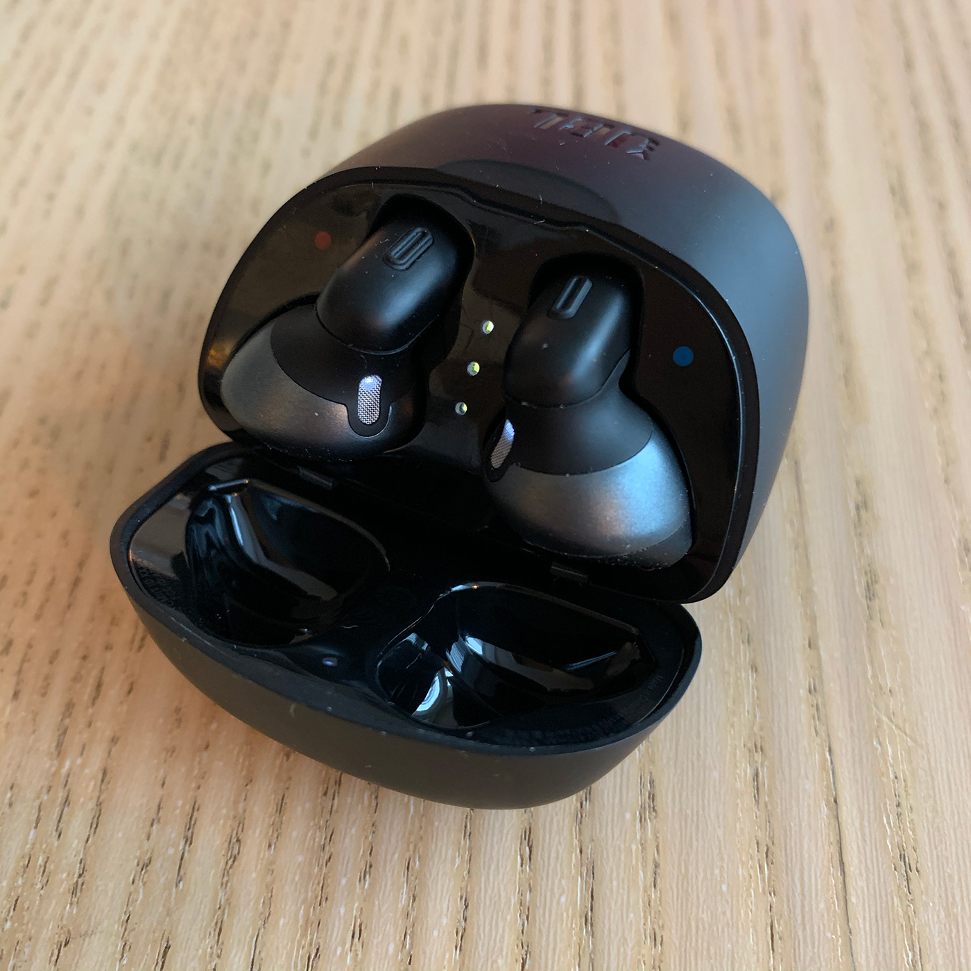 Batterilevetiden i propperne angives til tre timer, hvilket svarer rigtig godt overens med mine erfaringer, plus/minus 20 minutters tid alt efter volumen. Etuiet giver 16 timer ekstra mellem hvert besøg i stikkontakten, så regn med omkring 19 timers brug. Det er mindre end konkurrenterne, men det er godkendt – når prisen tages i betragtning.