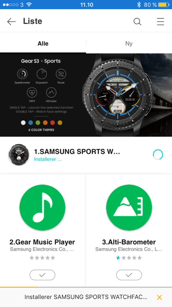 forhold til, hvad du kan finde på Android Wear eller Apple Watch platformene. Her er dog nogle enkelte større spillere som CNN, men langt de fleste apps i butikken er Samsungs egenproducede – og de begrænser sig til ganske basale funktioner som stopur og barometer og den slags. Hvad værre er, så er der også en del af de mere grundlæggende egenskaber, der ikke fungerer med mindre, du har en Samsung telefon; eksempelvis er det kun muligt at kopiere musik direkte til uret fra appen på en Samsung telefon – hverken fra andre Android telefoner eller en iPhone. Problemet er generelt endnu større på en iPhone, for selv om Gear S appen findes og er nogenlunde, er der stadig en del begrænsninger.
