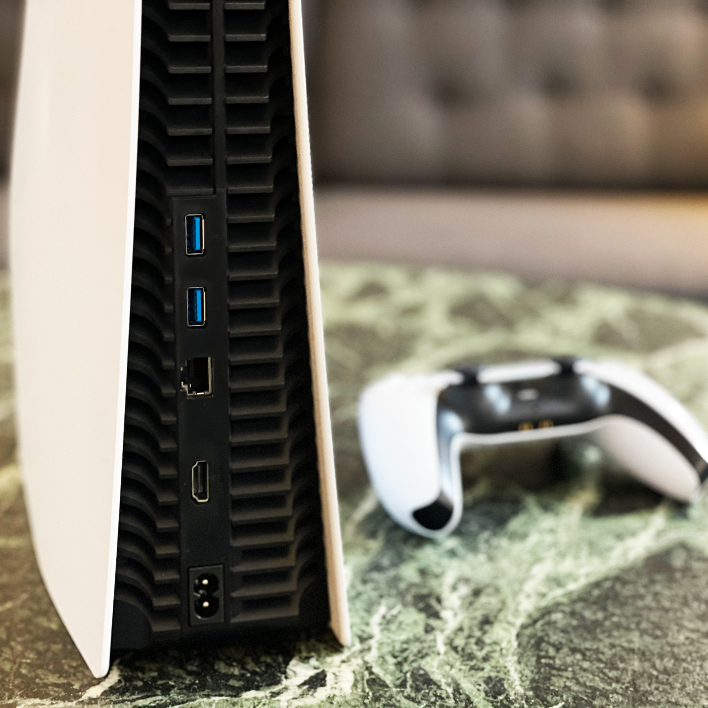 Men man kan selvfølgelig altid gemme den væk, hvis kompromiset ikke er lige for. Traditionen tro kan Playstation 5 både stilles horisontalt og vertikalt. Der medfølger en stand til den, der kan bruges på begge måder, men konsollen er klart bygget til højhus-måden. Den skal stå vertikalt, for når den skal ned og ligge bliver det buede og lethvide cover en større gene, der ikke helt virker efter hensigten.