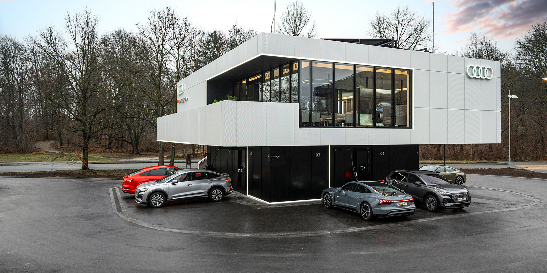 Under pilotprojektet i Nürnberg vil Audis ladehub være bemandet mellem kl. 10.00 og 19.00, men de seks ladestandere og loungen er tilgængelige døgnet rundt.