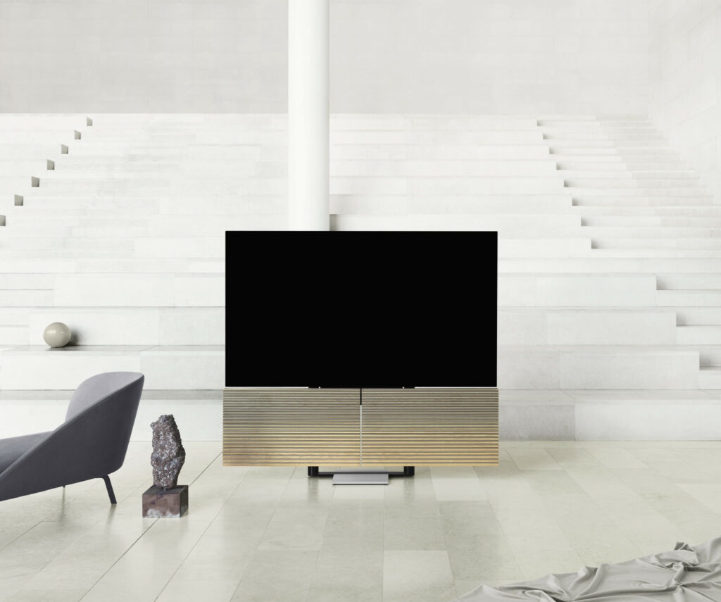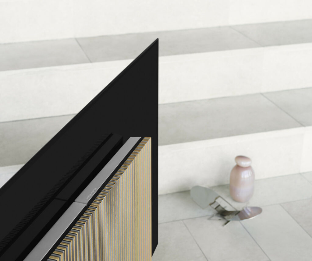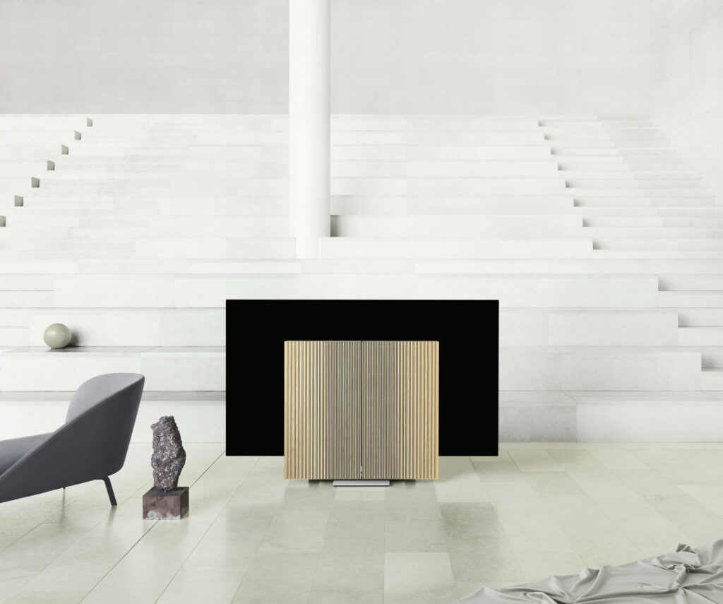 Skærmen, der åbenbares, er LG’s barberbladstynde 77-tommer C9 OLED-model, der i sig selv er et imponerende tv. Og gemt i de bevægelige vinger er et trekanals aktivt lydsystem der er kompatibel med både B&O’s eget Multiroomsystem samt Apple AirPlay 2, Google Chromecast og Bluetooth. Der er også indbygget 7.1 surround sound-dekoder, så du kan koble op til 8 Beolab-højttalere til systemet og få surround sound der vil gøre nabolaget hele byen misundelig.