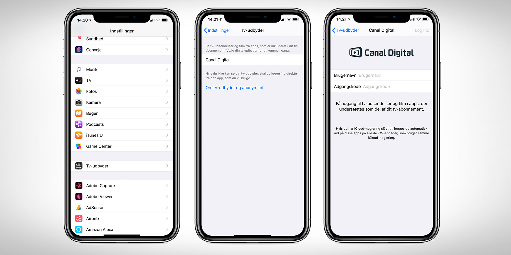 I den seneste opdatering, er menupunktet Tv-udbydere dukket op i indstillingerne – og et klik afslører, at man allerede kan tilføje Canal Digital. Som kunde kan man taste sit brugernavn og kodeord ind, så distribueres det automatisk på alle iOS og tvOS-enheder.