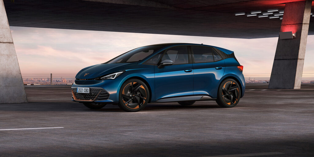 Spanske Seat har langt om længe haft verdenspremiere på den første fuldt elektriske model under Cupra-brandet, nemlig Cupra Born, der ses herover. Bilen er i virkeligheden en Volkswagen ID.3 i sportslig indpakning, for begge modeller bygger på den samme MEB-platform og deler da også en række tekniske specifikationer.