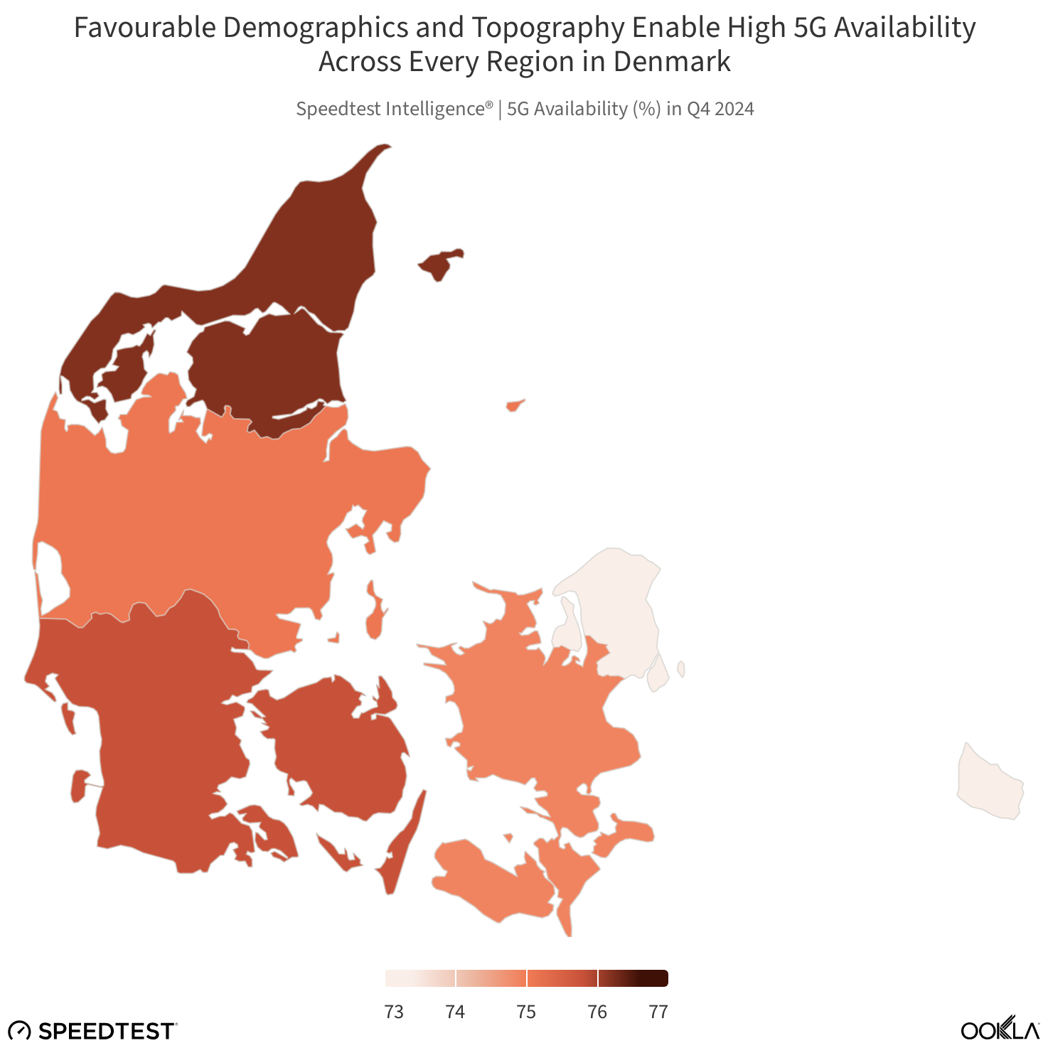 Vurdering af 5G-dækningen i de forskellige danske regioner (grafik: Ookla).