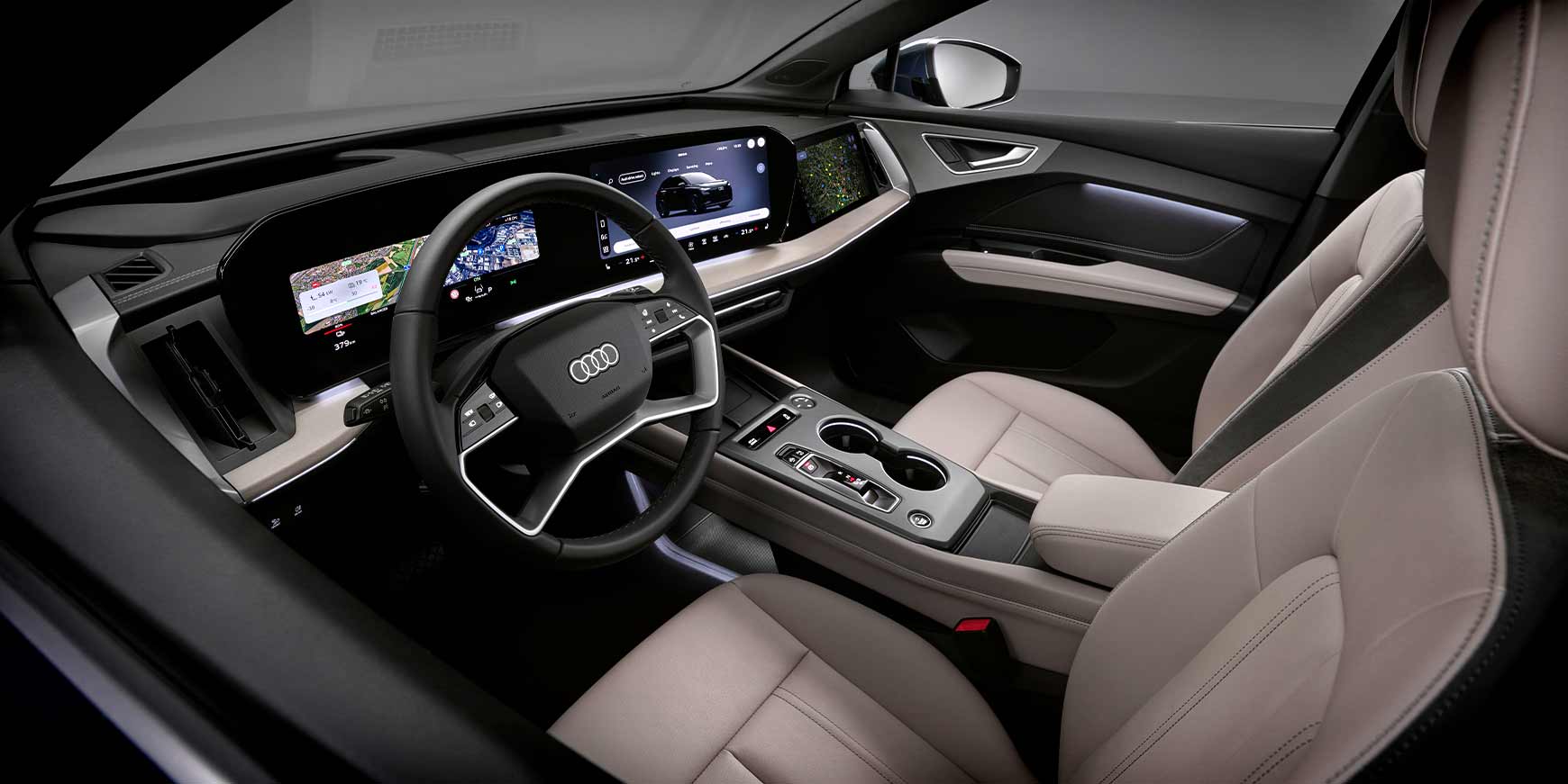 Den faceliftede udgave får nemlig en helt ny kabine med et førerorienteret panoramadisplay, der kombinerer et 11,9 tommer digitalt instrumenthus med en 12,8 tommer MMI-touchskærm. For første gang i segmentet kan Q4 e-tron desuden tilvælges med et 12 tommer passagerdisplay. Det er dog ekstraudstyr.