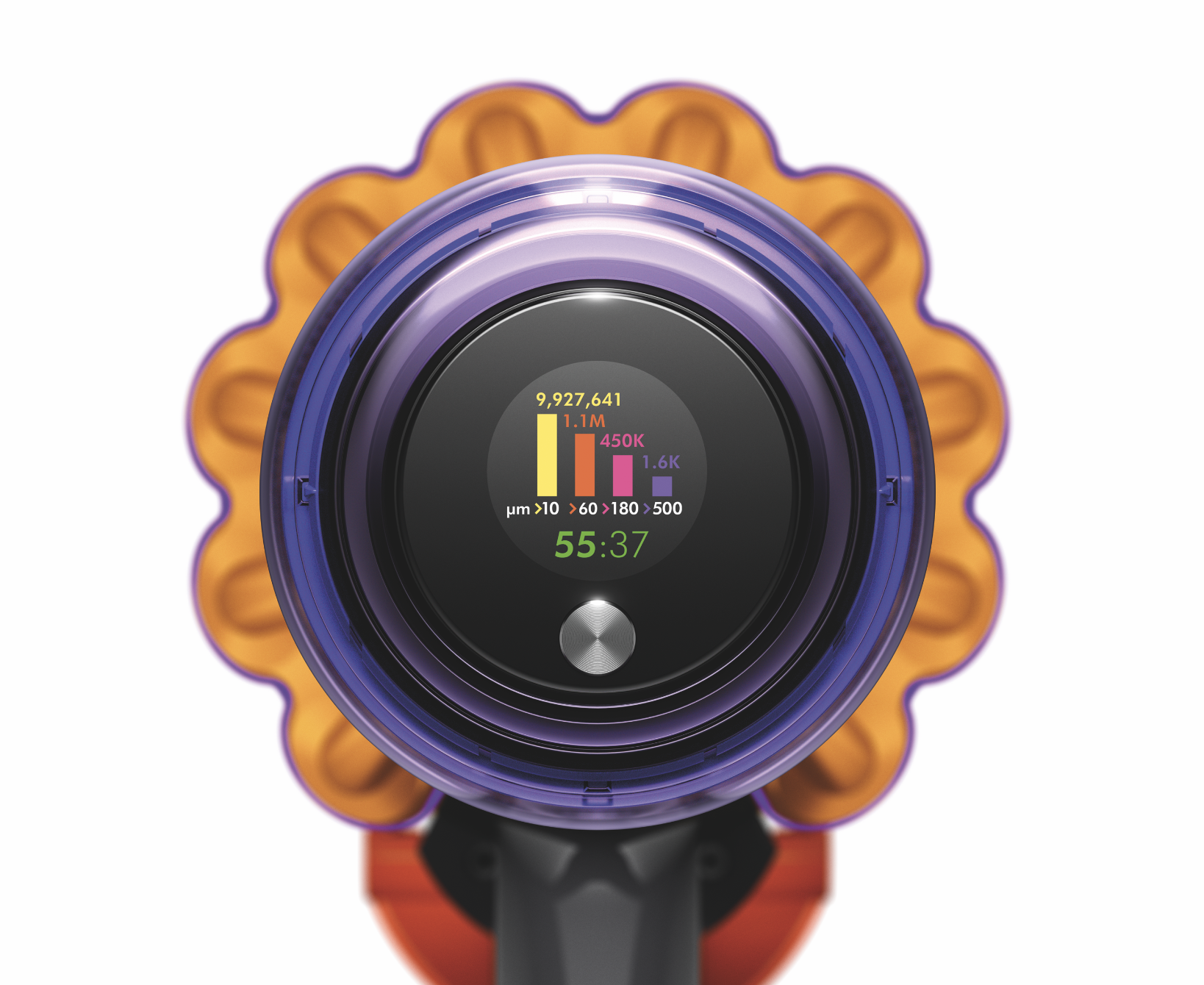 Informationerne om snavset vises frem på den udvidede LCD-skærm, der også viser batterilevetid og forskellige støvsugemodus. Det er meget fint, men det interessante er, at informationerne også bruges til at optimere støvsugningen. Hvis Dyson V15 Detect opdager større partikler i et område (eksempelvis havregryn eller lignende), øges motorydelsen automatisk.