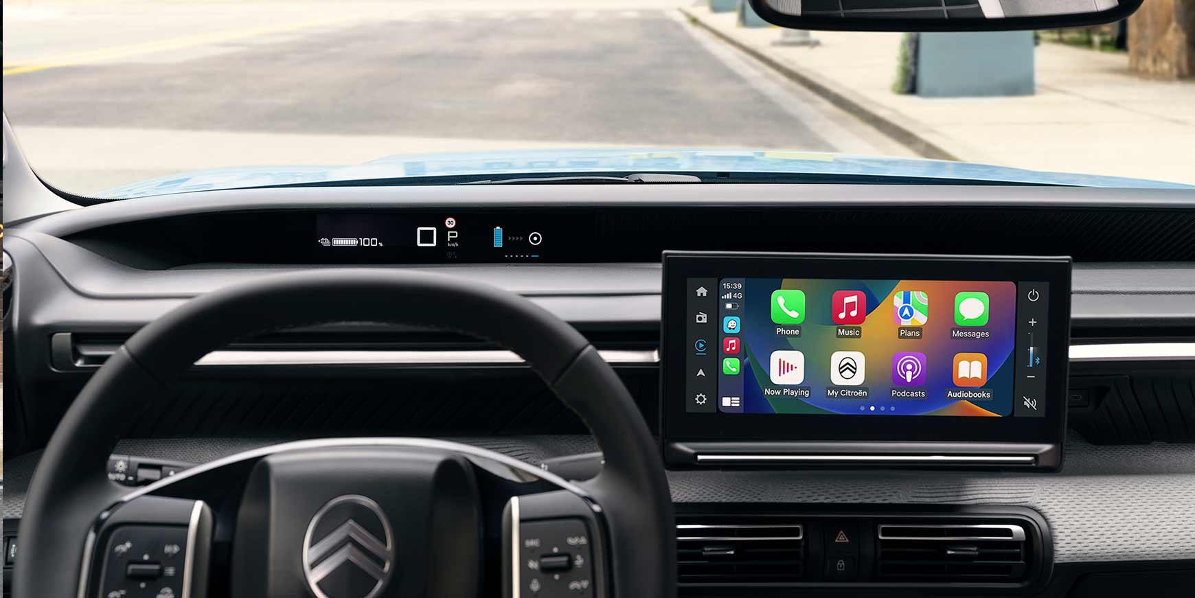 Det er heller ikke nogen potent motor, der sidder i e-C3’eren. Motoren yder 113 hk og har en topfart på omkring 135 km/t.