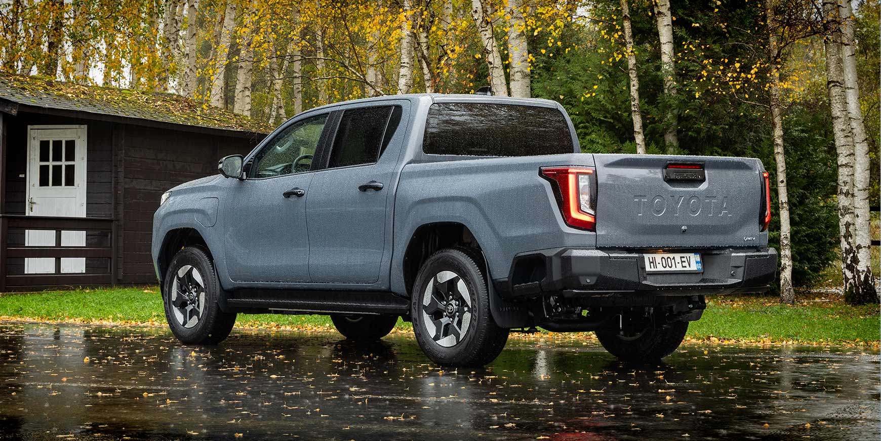 Udvendigt har Hilux fået et markant facelift med smallere LED-forlygter og et massivt Toyota-logo i front. Den elektriske version skiller sig ud med lukket frontgrill og aerodynamiske alufælge.