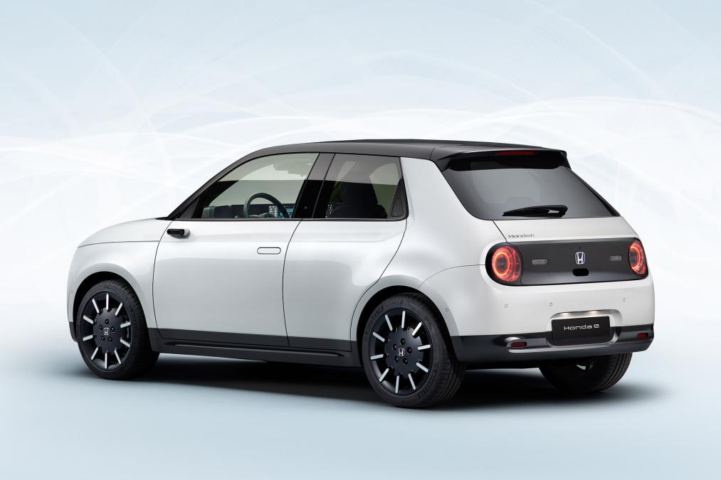 Honda e har ikke forandret sig voldsomt siden de første prototyper blev vist frem. Designerne har ladet sig inspirere af klassiske Honda-modeller som Mk1 Civic. Den har relativt kompakte dimensioner med en længde på 3,89 meter, en bredde på 1,75 meter og højde på 1,49 meter. Altså væsentlig mere kompakt end både BMW i3 eller Renault Zoe. Der er da også kun siddepladser til fire personer; bagsædet ligner nærmest en polstret bænk.