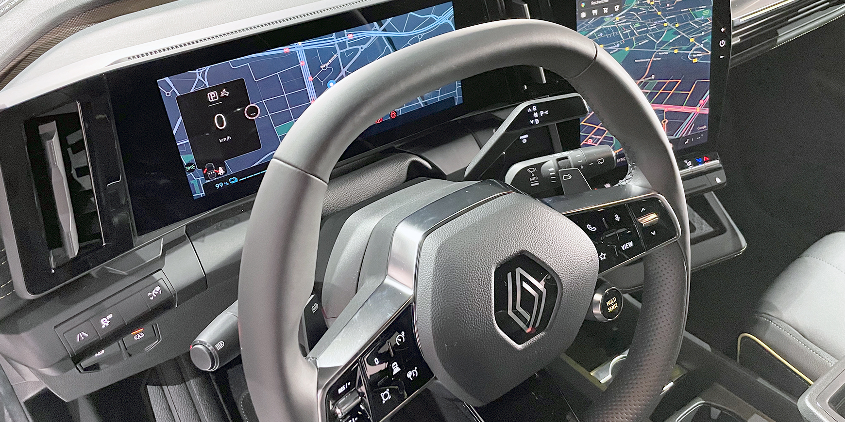 Men skuffer batteri og opladning en smule, så imponerer designet og teknikken. I hvert fald undertegnede. Kabinen domineres af den såkaldte OpenR-skærm, der giver et samlet areal på 24 tommer i form af et omvendt L. Dashboard-delen med køreinformationer (12,3 tommer) i landskab over rattet og en stor multimedieskærm i højformat (9 eller 12 tommer afhængig af variant) mellem chauffør og forsædepassageren.