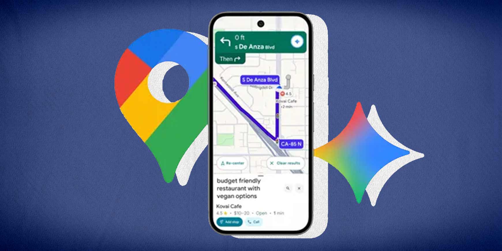 Med Gemini integreret direkte i Maps kan du tale til din navigation i et naturligt sprog. Du kan for eksempel spørge: “Er der en budgetvenlig restaurant langs min rute?” eller “Hvordan er parkeringsforholdene dér?”