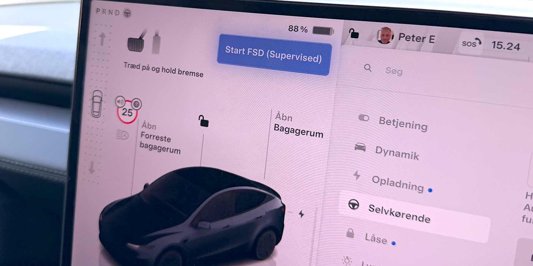 I Holland koster Full Self-Driving (Supervised) i dag 99 euro om måneden eller 7.500 euro som engangsbetaling. Tesla har endnu ikke meldt danske priser ud, men hvis systemet bliver godkendt i EU i maj og rulles ud herhjemme kort efter, vil den hollandske pris være det klare pejlemærke.