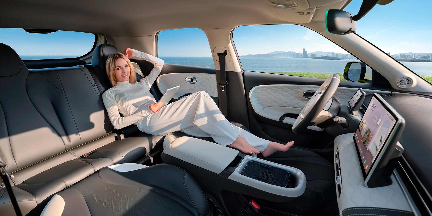 I kabinen er Nammi Box udrustet med en 12 tommer stor multimedieskærm, mens instrumentklyngen er placeret i en 5 tommer skærm over rattet.