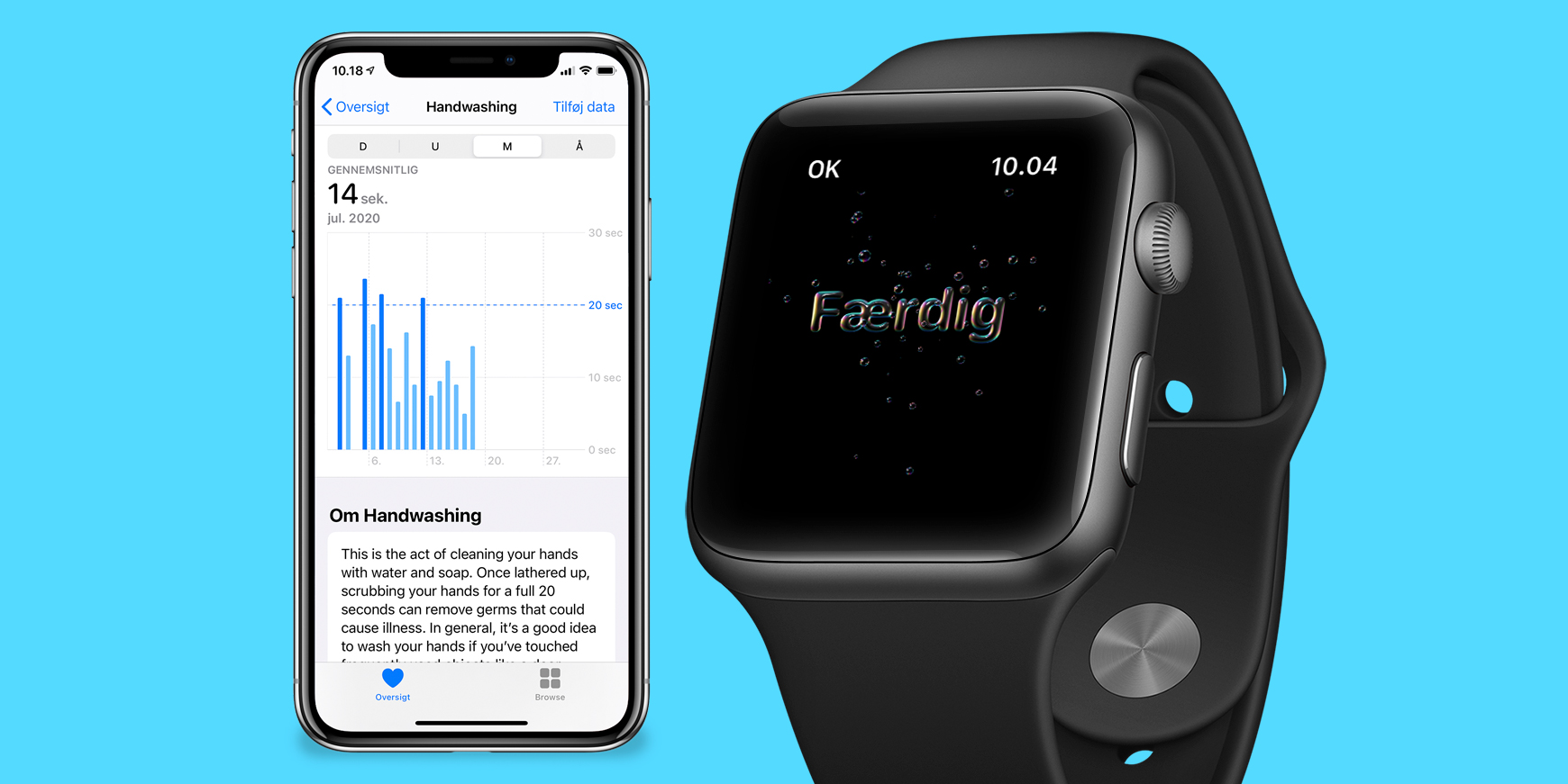 Ved at benytte urets sensorer, mikrofoner og ved hjælp af avanceret maskinlæring, kan uret registrere når der vaskes hænder. Apple Watch starter så automatisk en timer på 20 sekunder. Stopper du med at vaske hænder inden de 20 sekunder er gået, vil du blive opfordret til at fortsætte.