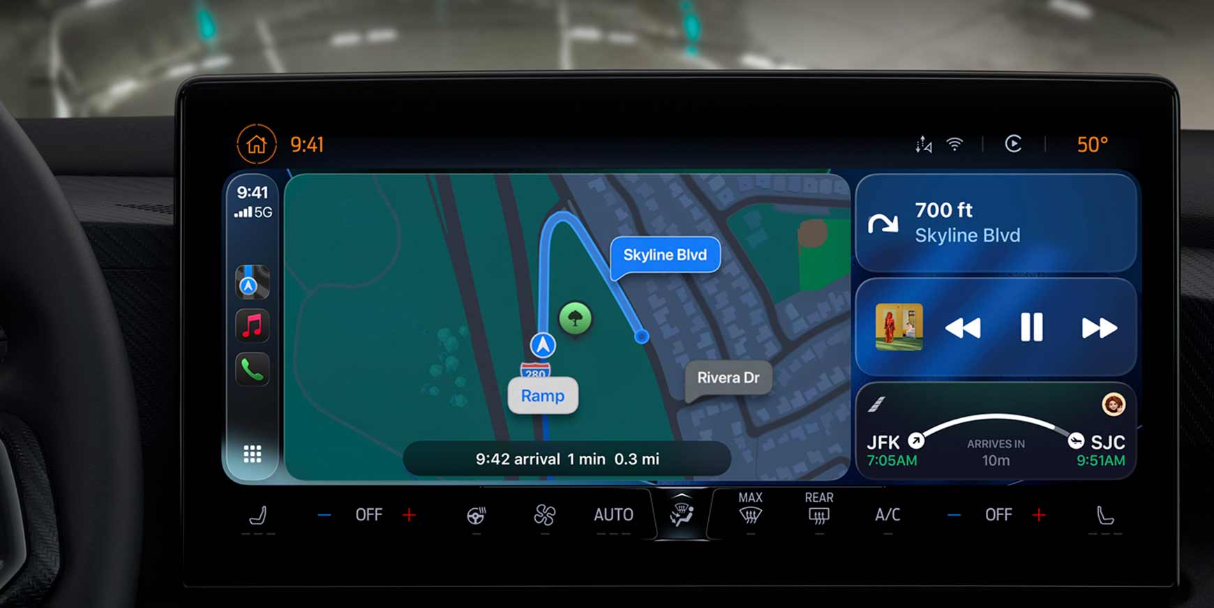 Derudover kommer CarPlay nu med understøttelse af Live-aktiviteter. Det kan være sportsscoren, der opdateres live på skærmen, eller status for en flyankomst, hvis du er på vej til lufthavnen.