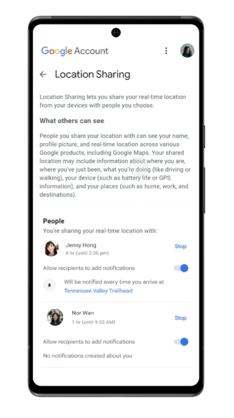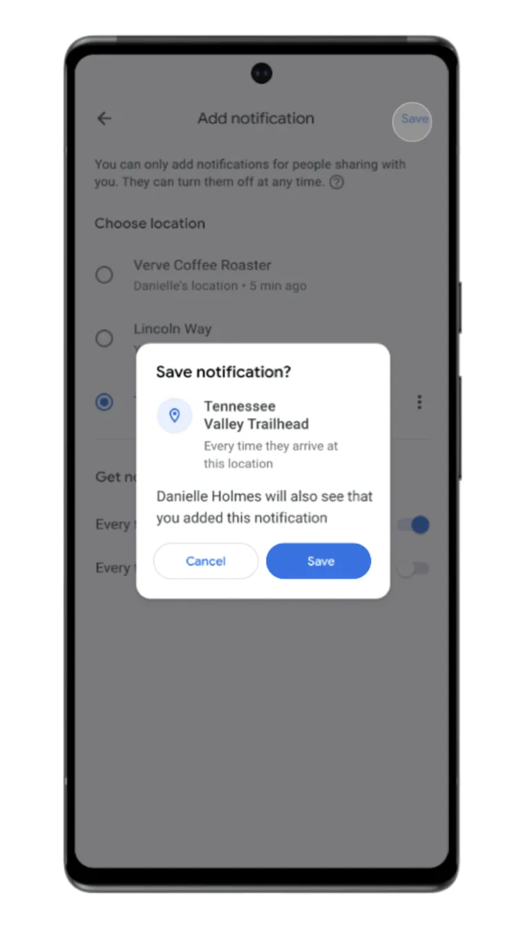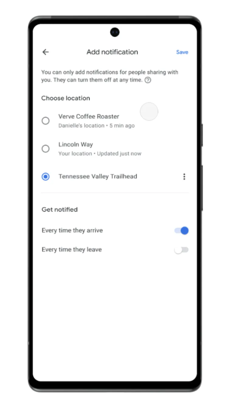 I en opdatering til Google Maps, som er ved at rulle ud, har Google givet tjenestens lokationsdeling nye funktioner. Det bliver nu muligt at opsætte notifikationer for personer, som du allerede deler lokation med, så du får besked når de ankommer eller forlader en bestemt lokation.