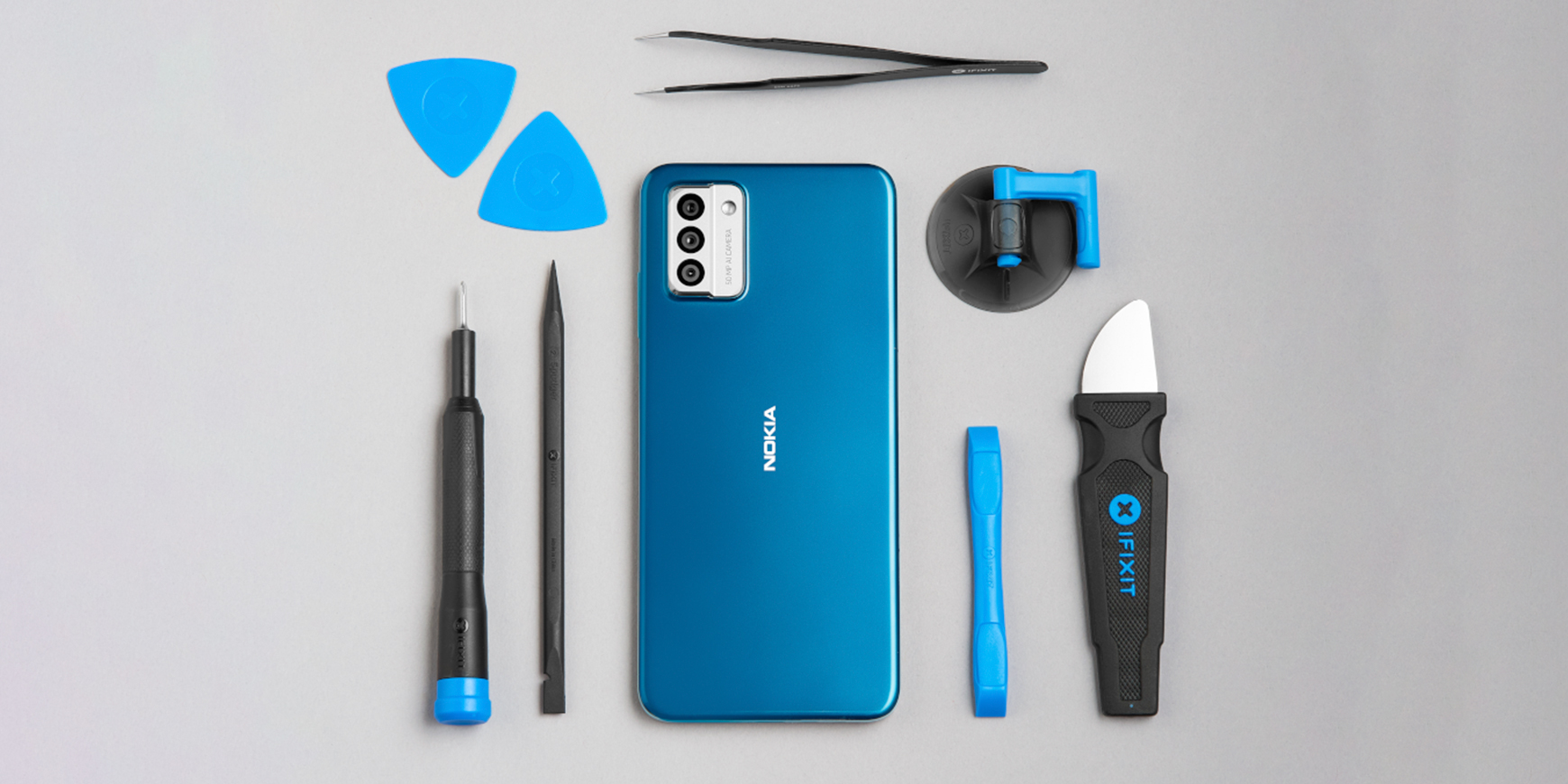 Nokia G22 er den første Nokia-smartphone, hvor hver enkelt detalje er overvejet for at gøre den så let at reparere som muligt. Målet er at skubbe telefonens levetid op på et nyt niveau. I samarbejde med iFixit kan man få adgang til reparationsvejledninger og dele til at erstatte en beskadiget skærm, bøjet opladningsport eller fladt batteri på en Nokia G22.