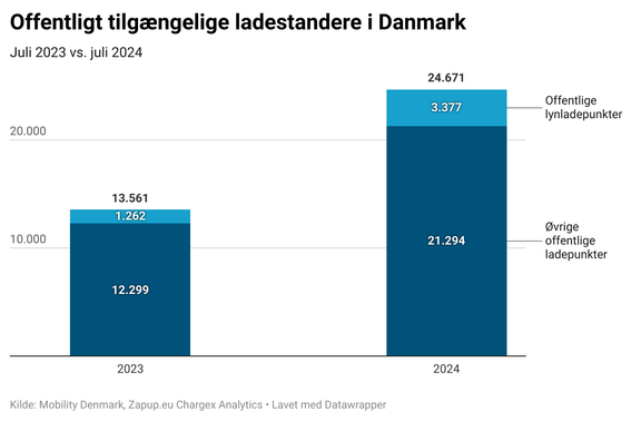 Antallet af lynladepunkter er samtidig vokset til 3.377, hvilket er 169 procent flere end i juli 2023.