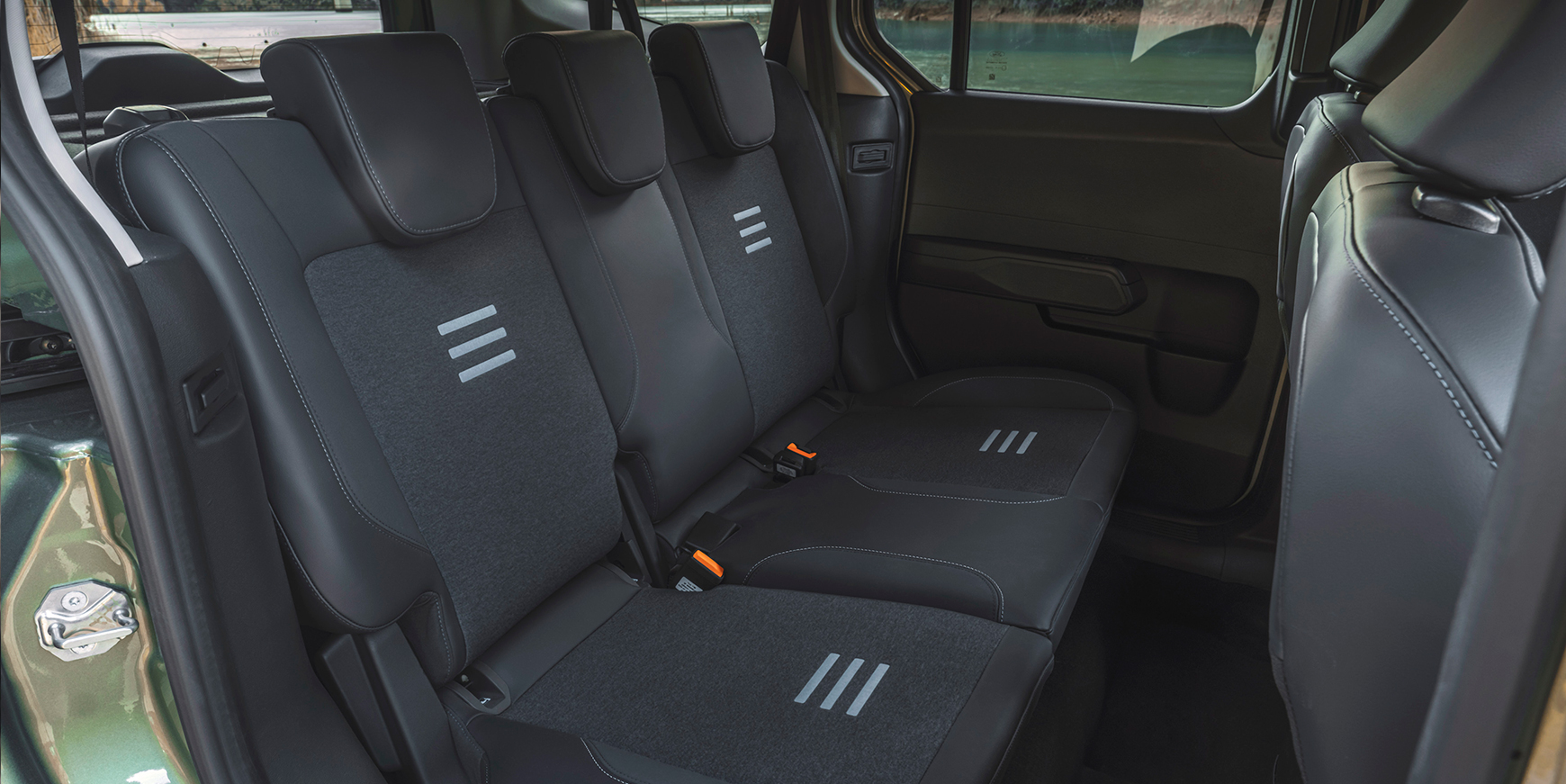 Ford E-Tourneo Courier har plads til fem voksne og mere end 44 procent mere bagagerumsplads end den udgåede Tourneo Courier. Passagererne på bagsædet vil blandt andet kunne nyde godt af den forbedrede skulderplads og kabinehøjde.
