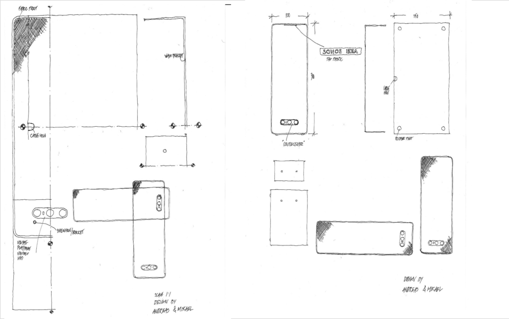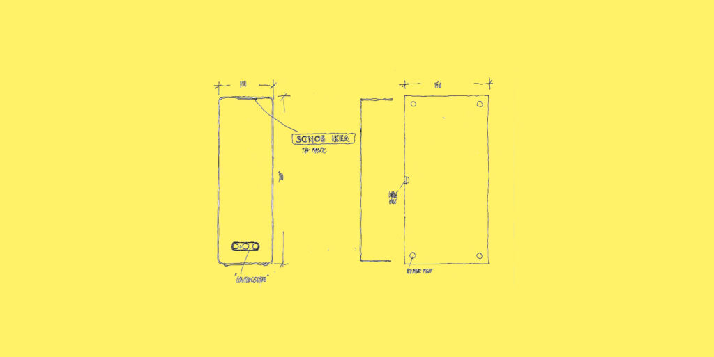 På Democratic Design Days bliver de første prototyper vist frem – og skal man tro den nyligt lancerede teaser-video (se ovenfor) og nedenstående tegning af den første prototype, er der tale om ret kvadratiske og minimalistiske højttalere.