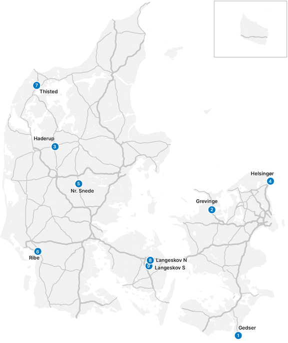 | 1 | Gedser | 2 | EV Infra Danmark ApS |