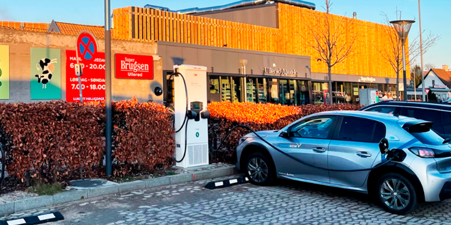 OK har allerede modtaget en del af ordren. De har installeret de første af sine Tritium 75kW modulopladere i Super Brugsen butikken i Hillerød og Kvickly butikken i Odder.