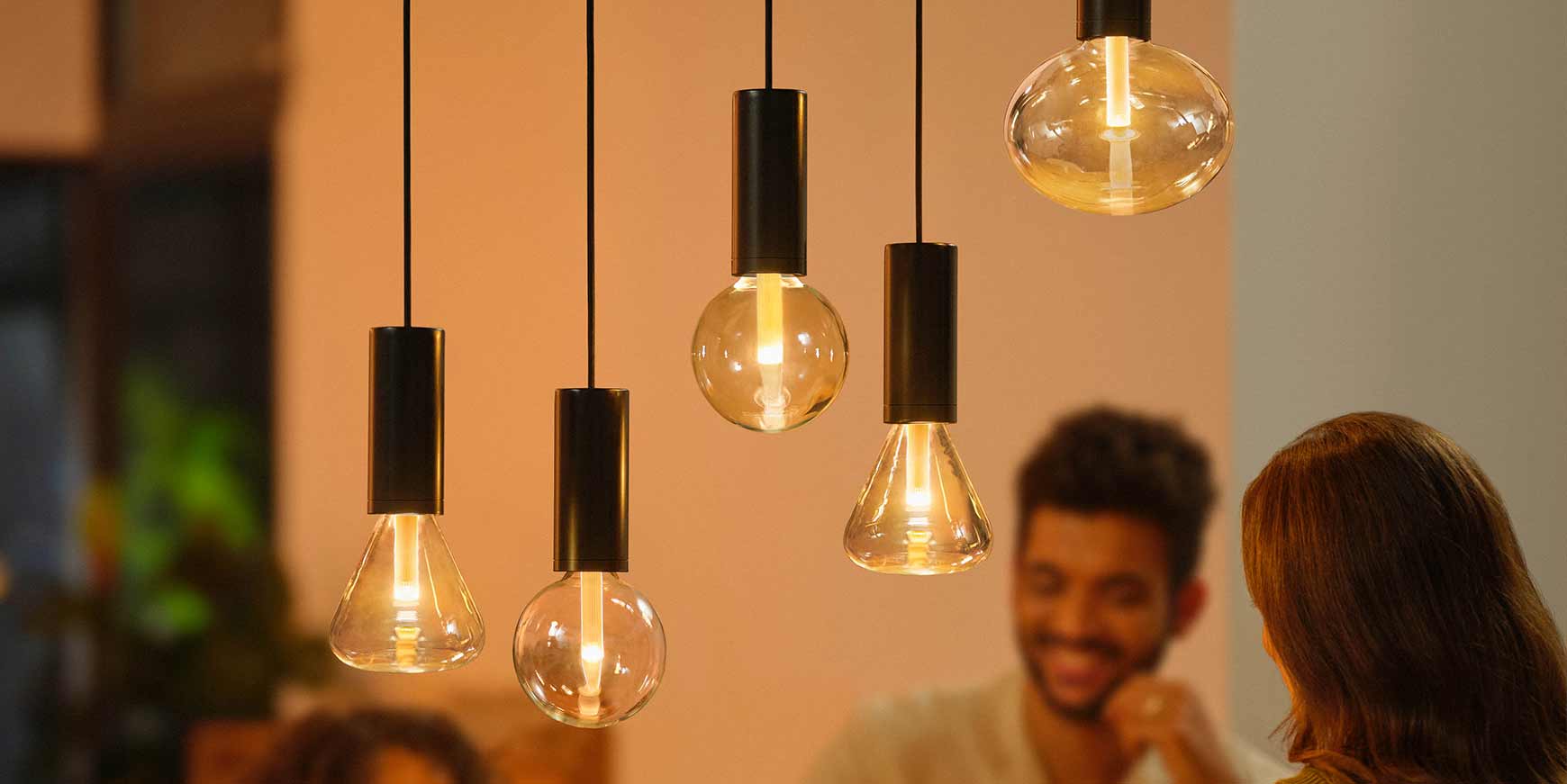 Efter lanceringen af den populære Ellipse-form, kommer fire nye Lightguide-pærer. Man kan nu vælge mellem fem håndblæste pærer i glas: Small Globe, Large Globe, Triangle, Edison og Ellipse. Pærerne kan lyse i millioner af nuancer af hvidt og farvet lys, og de kan styres med Philips Hue-app’en. Priserne er som følger: