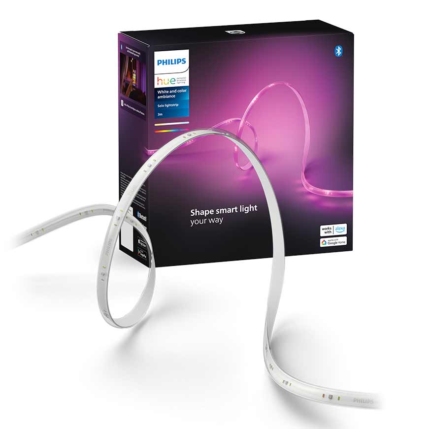 Form og bøj lyset efter dine behov. Den er nem at bruge og giver mulighed for at tilføje lys på selv svært tilgængelige steder. Med varianter på 3, 5 og 10 meter, der kan afkortes, passer den perfekt i skabe, langs lofter eller vægge, og langs trapper og gulve. Med 1.700 lumen lyser lightstrippen dit hjem op med farver og rent hvidt lys (takket være RGBWW LED’er). Den nye solo–lightstrip fås i dag for 529 kroner (3 meter), 679 kroner (5 meter) eller 1.199 kroner (10 meter).