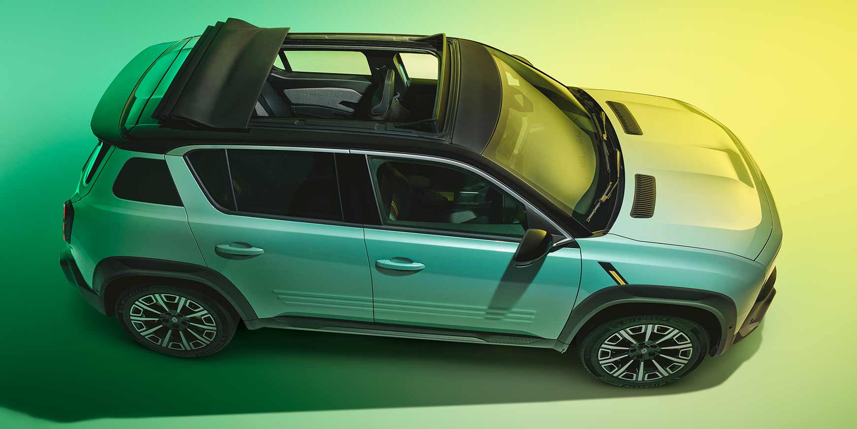 R4 E-Tech electric har mange designmæssige ligheder med den originale Renault 4 – i alle designaspekter, hvad enten det er kofangeren, kølergrillen eller det interiøre design. En nøglefeature er canvastaget, der ikke alene skal spare vægt, men også give bilen sit helt særlige præg. Cavanstaget er 80 centimeter I bredden og 92 centimeter i længden og det kan åbnes i forskellige positioner.