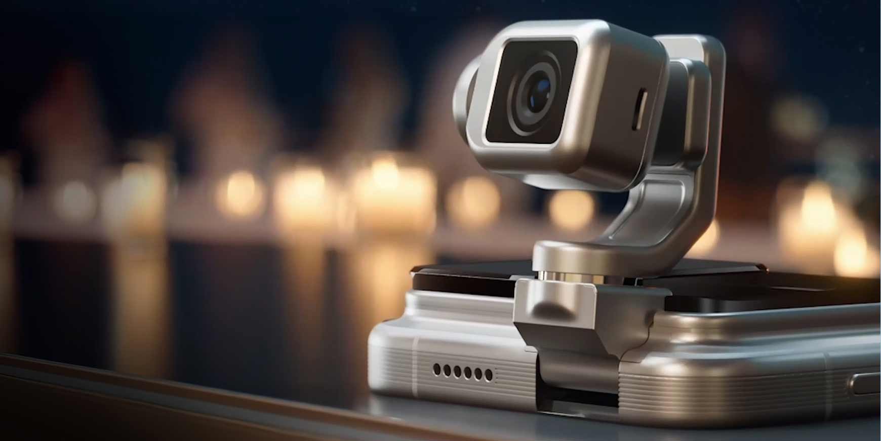 Forestil dig en DJI Osmo Pocket bygget direkte ind i telefonen. Kameraet kan foldes ud, vippe, dreje og endda vende sig selv for at tage selfies – alt sammen automatisk. I Honor’s teaser-video ser man det lille kameraarm bevæge sig nysgerrigt rundt, filme fra skæve vinkler og “kigge” op på nattehimlen, som om det selv bliver forundret over stjernerne.