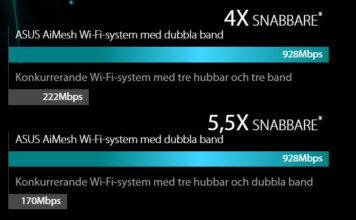 Asus har i egne laboratorie-test set, hvordan AiMesh-systemet med virksomhedens mellemmodel RT-AC86U har opnået hastigheder på op mod 1 gigabyte pr. sekund. Det er hurtigt nok til at overføre en fil på 4,5 gigabyte til en anden computer eller lagringsenhed i dit netværk på 36 sekunder – trådløst.
