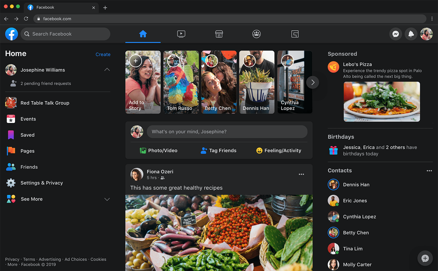 Et par af de store nyheder i det nye facebook.com er Dark Mode og muligheden for at se billeder og videoer i fuldskærm. Men generelt har designet få en overhaling af de helt store. Det er blevet mere simpelt, skrifttyper er gjort større og nye ikoner i topbaren gør det nemmere at komme rundt i de forskellige sektioner.