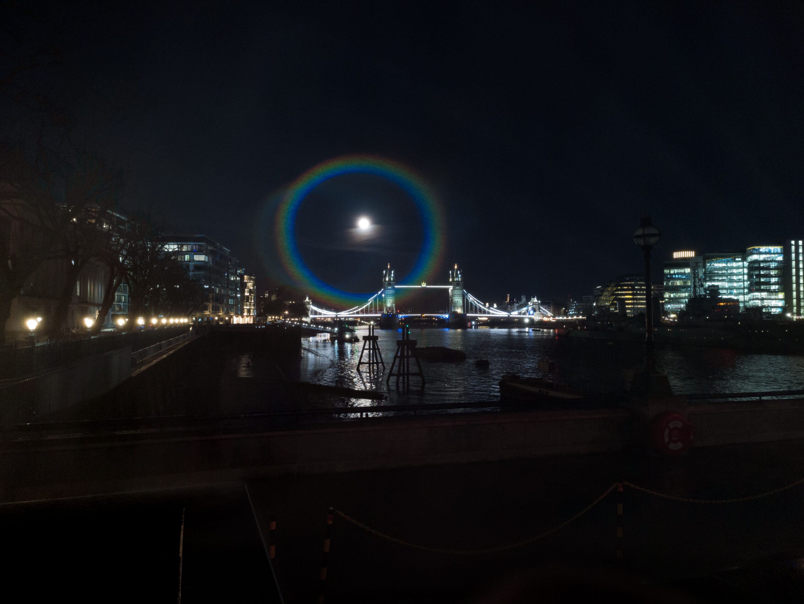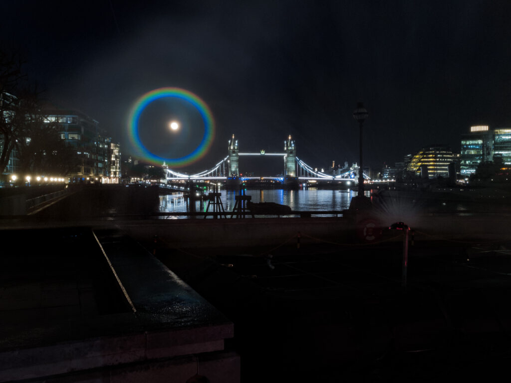Derfor var det en stor overraskelse for tusindvis af briter, da OnePlus i går genskabte det betagende fænomen ved Tower Bridge midt i London og lod en kunstig måneregnbue i smukke farvenuancer kaste lys mod skyer og bygninger midt i den mørke nat.