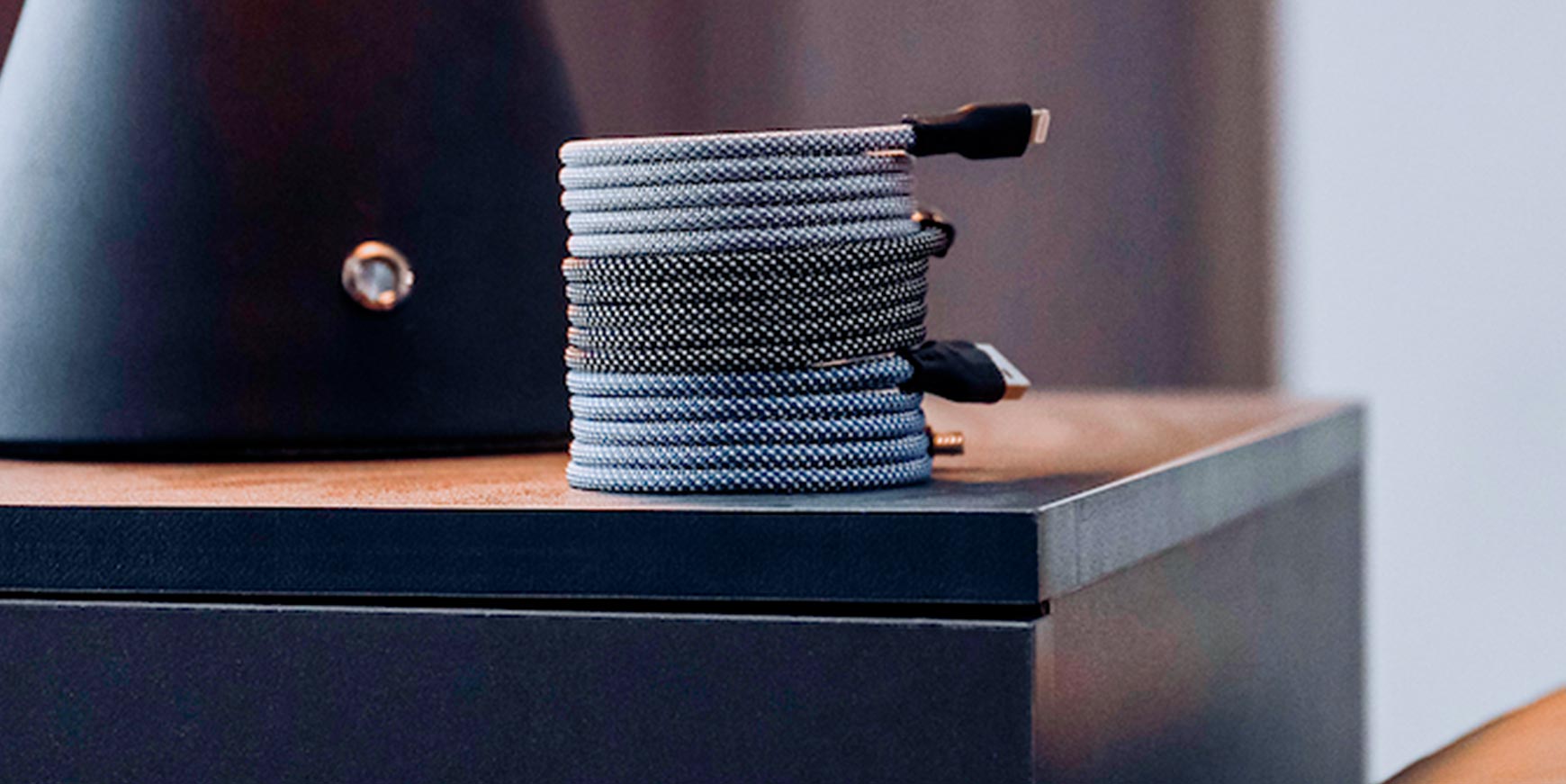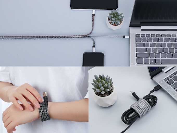 Kablerne kan endda monteres magnetisk med hinanden. Så i stedet for at have et skrivebord, der flyder med kabler, kan man altså sætte dem sammen, så de ligner et enkelt kabel.