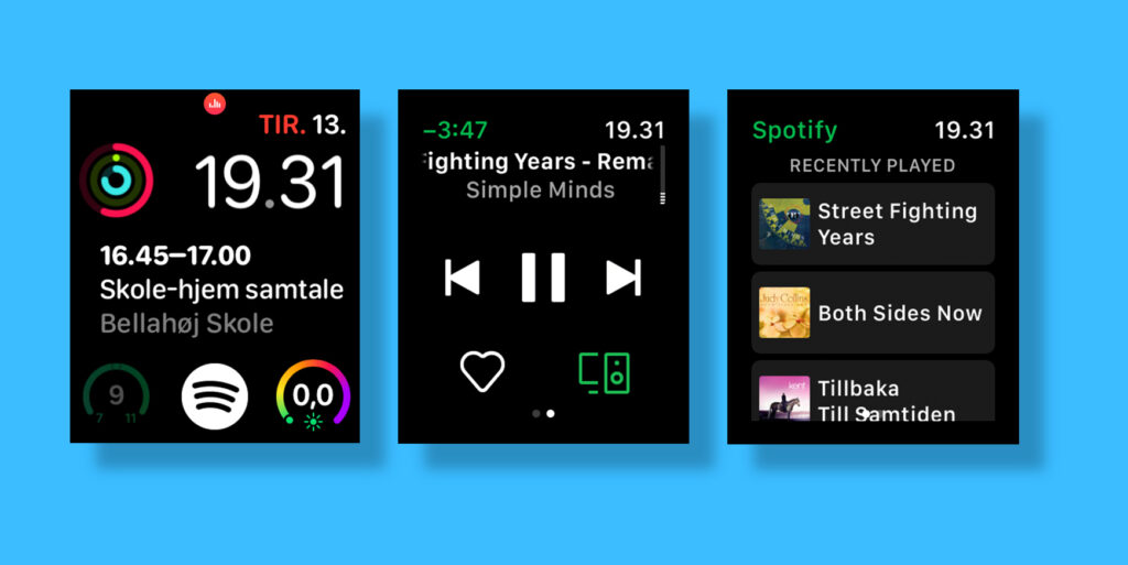 Spotify har tidligere udtrykt at målet var, at app’en skulle kunne streame musik direkte fra tjenesten uden at det skal omkring en mobiltelefon. Sådan er det desværre ikke endnu. Uret har ikke en direkte forbindelse til Spotify, men bruger i stedet app’en på mobilen. Der er desværre heller ikke mulighed for en offline-tilstand. Endnu.