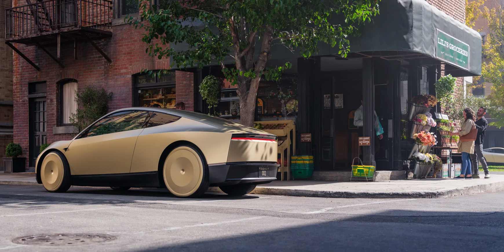 Designet er futuristisk, med døre der åbner opad som sommerfuglevinger. Den har klare visuelle paralleller med både Cybertruck og Model Y.