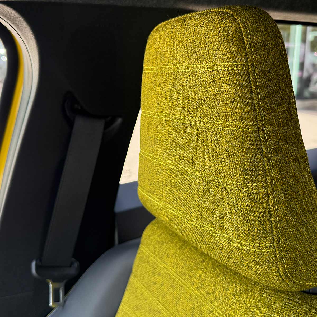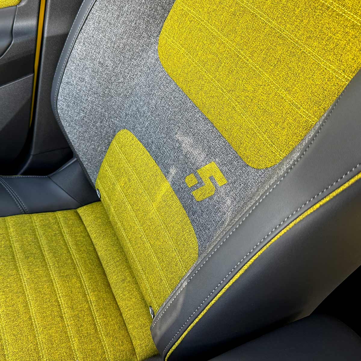 Når man sætter sig ind i Renault 5 E-Tech føles det lidt, som at sætte sig til rette i en fransk café fra fremtiden – alt er hyggeligt, gennemtænkt og en lille smule charmerende skævt. Sportssæderne foran er bløde som croissanter og omslutter dig perfekt – og selv hvis du er over gennemsnitshøjde, er der plads til både ben og hårpragt.
