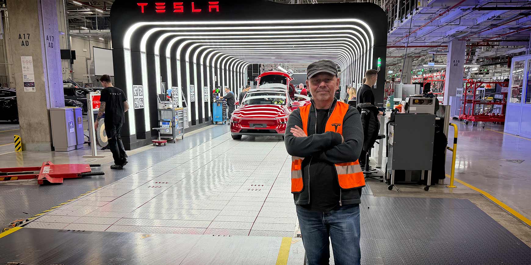 Tesla fortalte os, at Gigafactory Berlin nu har over 11.000 ansatte fordelt på mere end 130 nationaliteter. En stor del af dem har ikke tidligere arbejdet i bilindustrien, men er blevet oplært internt. Det var svært ikke at lægge mærke til, hvor blandet medarbejderstaben var, når man gik rundt mellem stationerne.