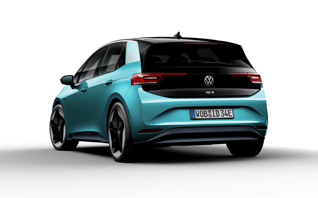 Volkswagen har ved samme lejlighed hevet forklædning af bilen, så man nu kan se det endelige produktionsklare design. Pressebillederne viser ID.3 i grøn og hvid. Vi har samlet en håndfuld af dem her: