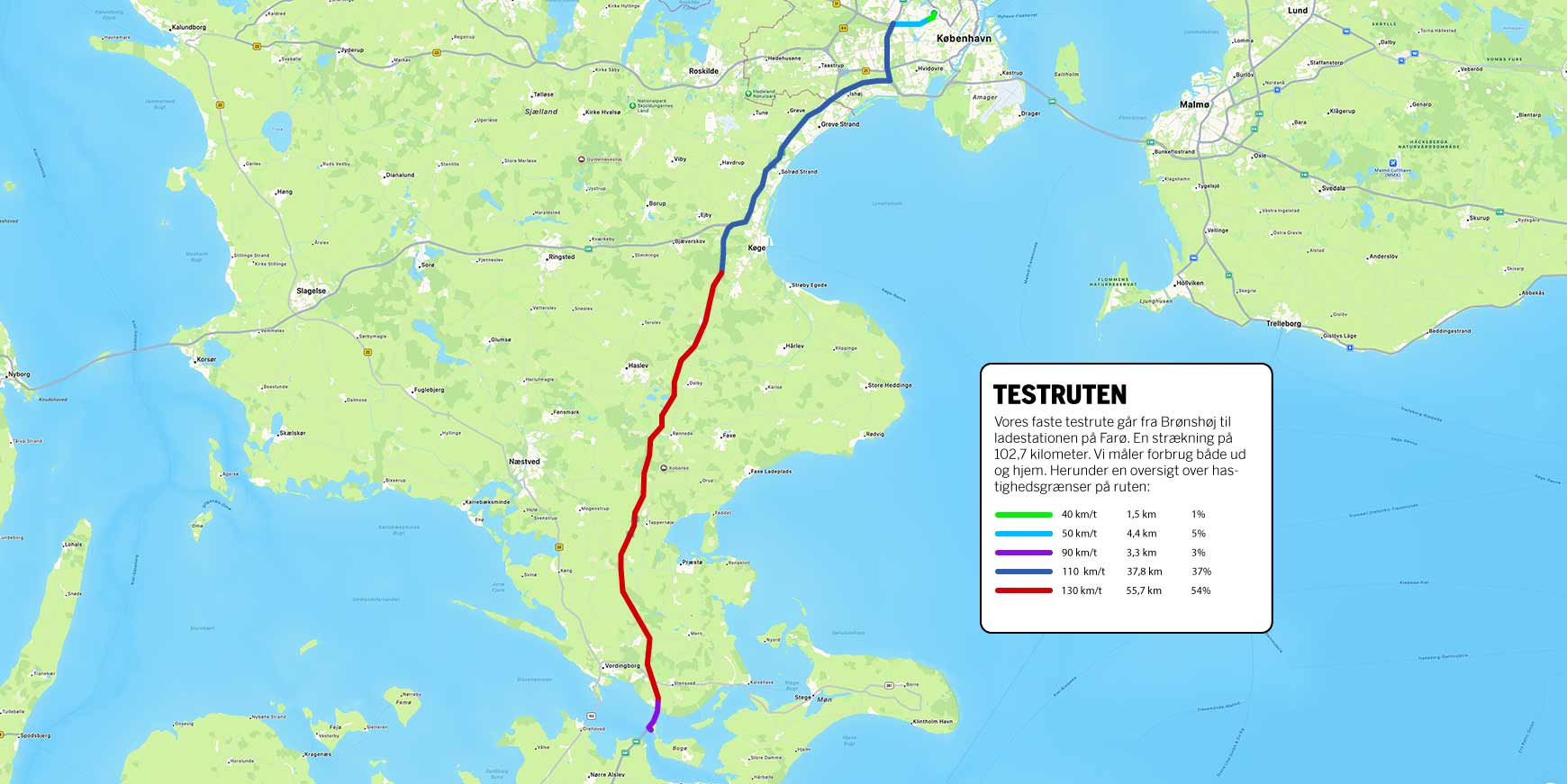 På turen derned lå forbruget på bare 19kWh/100km og gennemsnittet for hele den 205 kilometer lange tur endte på 20,5kWh/100km. Vel at mærke på vinterdæk og i den køligere ende af temperaturskalaen (3,5 grader). Dermed leverede ID.7’eren en reel rækkevidde på 376 kilometer under de givne forhold, hvor der blev kørt en samlet strækning på knapt 200 kilometer med en hastighed på mindst 110 km/t. Det er absolut ikke dårligt.