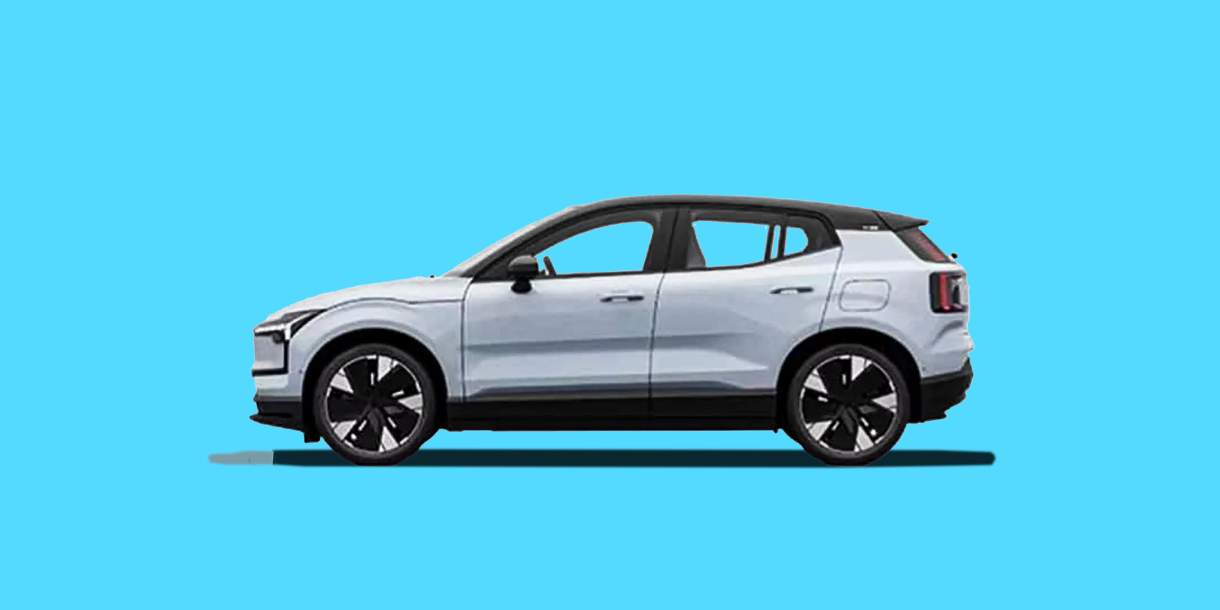 Volvo EX30 er, ikke overraskende, lidt kortere og slankere end Volvo XC40. Med sin to-farvede c-stolpe har den arvet lidt udtryk fra XC40, men for- og baglygterne minder mere om dem, vi ser på den kommende Volvo EX90.