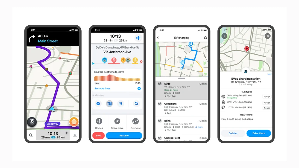 Waze præsenterede nyheden på deres blog forleden, hvor de også har delt nedenstående skærmbilleder af funktionen. Ladestationerne vil blive vist både undervejs og ved planlægning af ruter. Stationerne kan søges efter og navigeres direkte til, ligesom der kan tilføjes et stop, ved at klikke på den nye ‘EV’-knap i app’en.