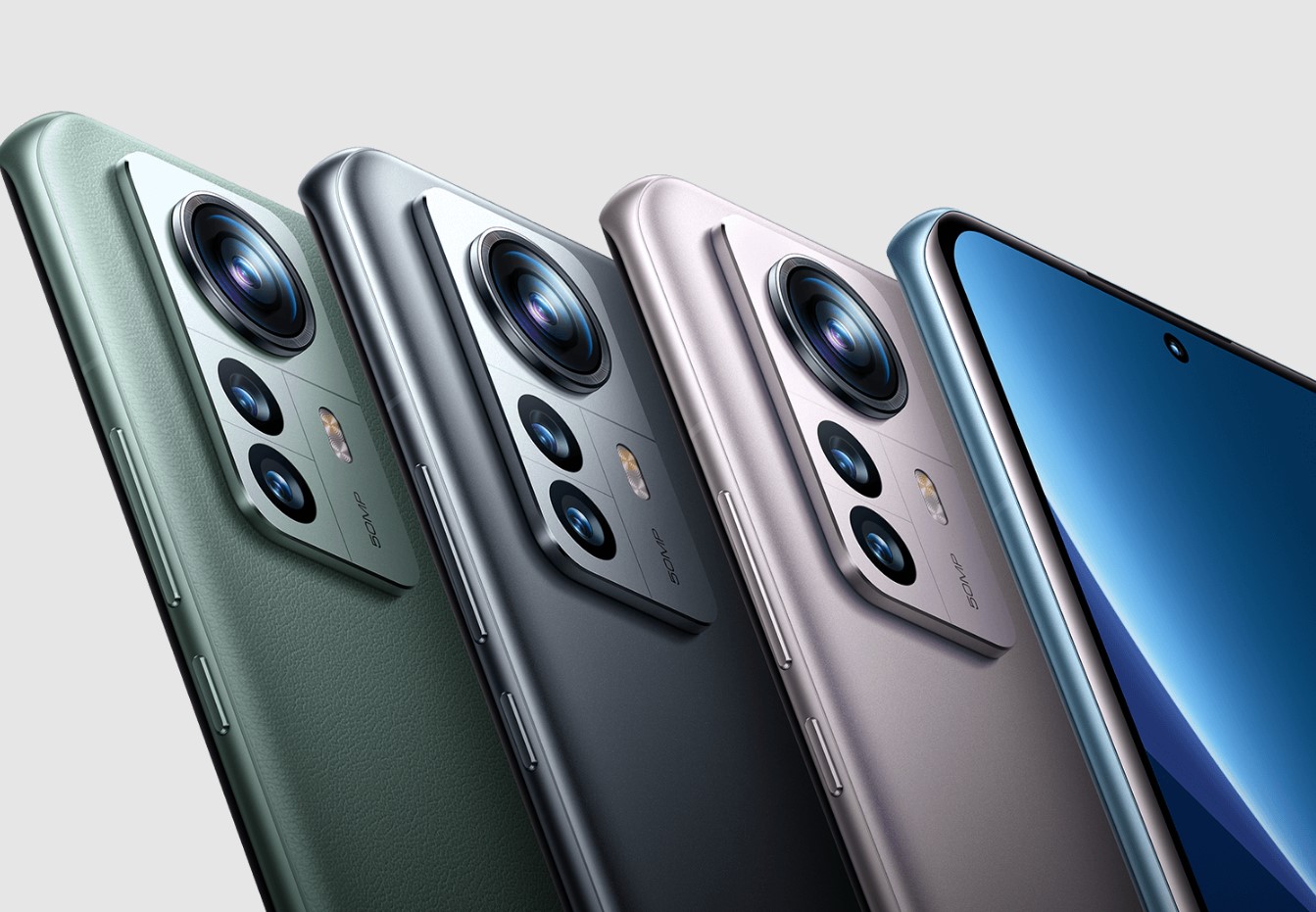 Xiaomi 12-serien kommer i fire farver sort, blå og pink, samt en specialudgave i grøn vegansk læder.